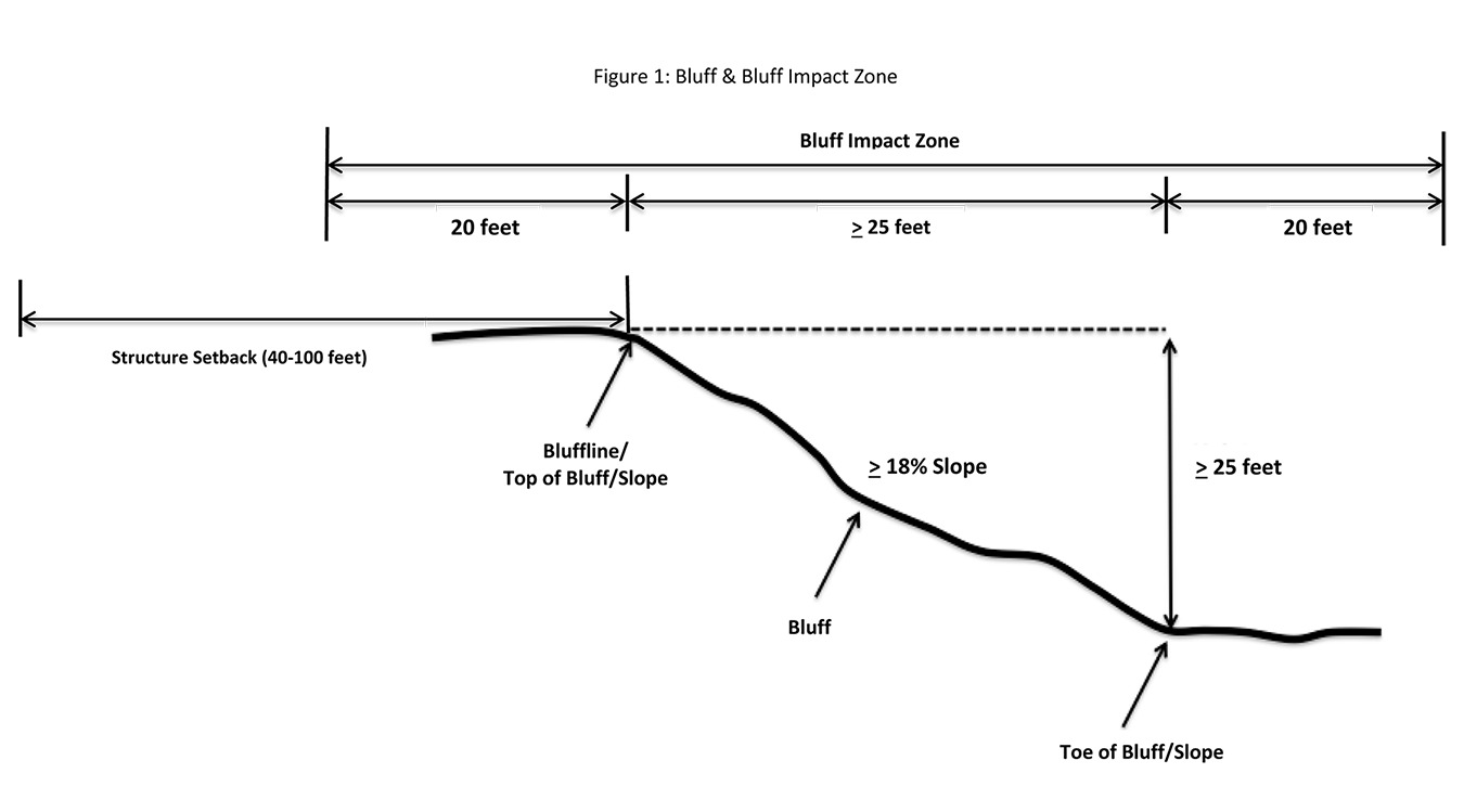 "Bluff impact zone" means the bluff and land within 20 feet of the bluff. See Figure 1.