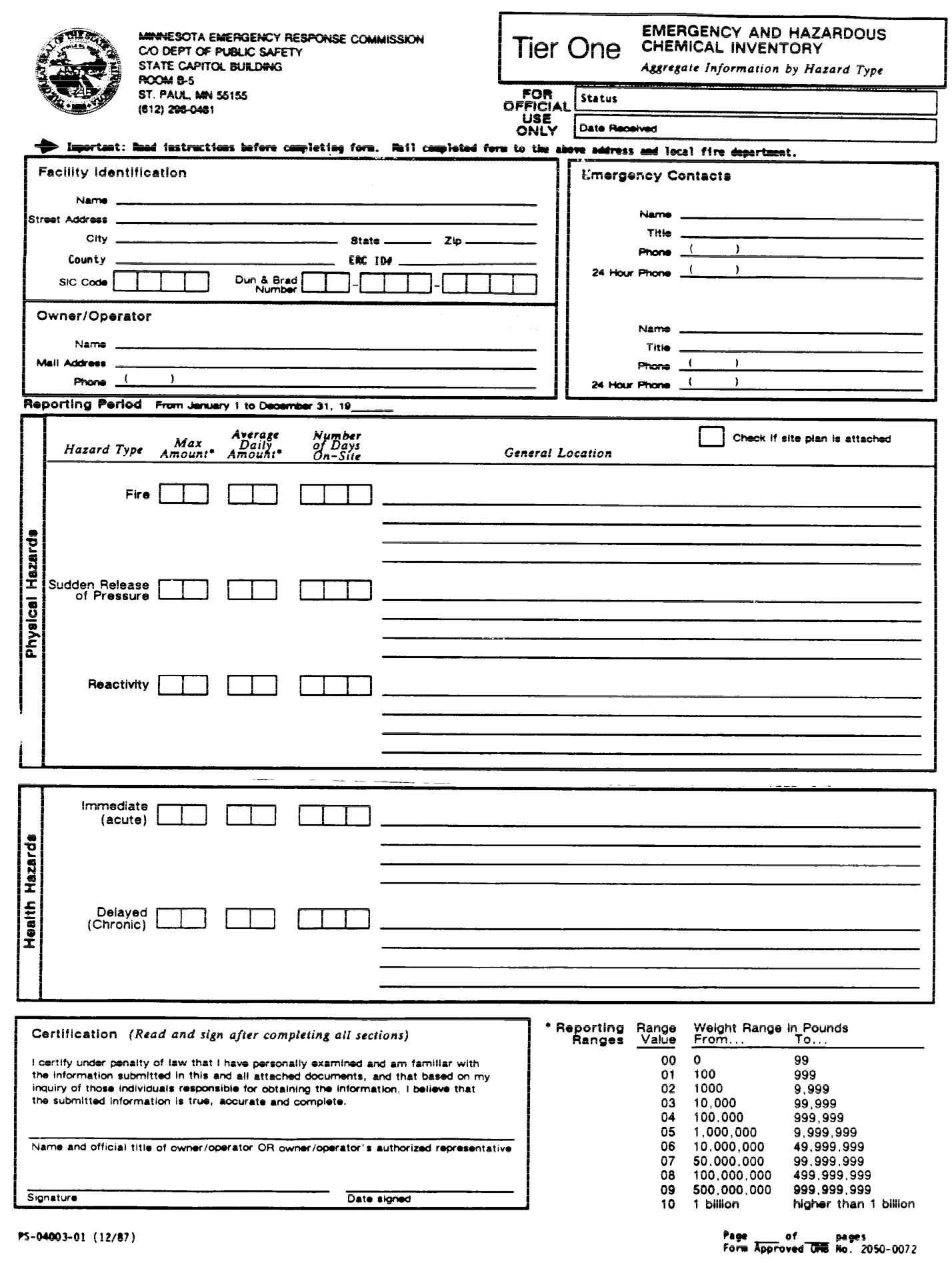 1 page - Insert Emergency and Hazardous Chemical Inventory form here.