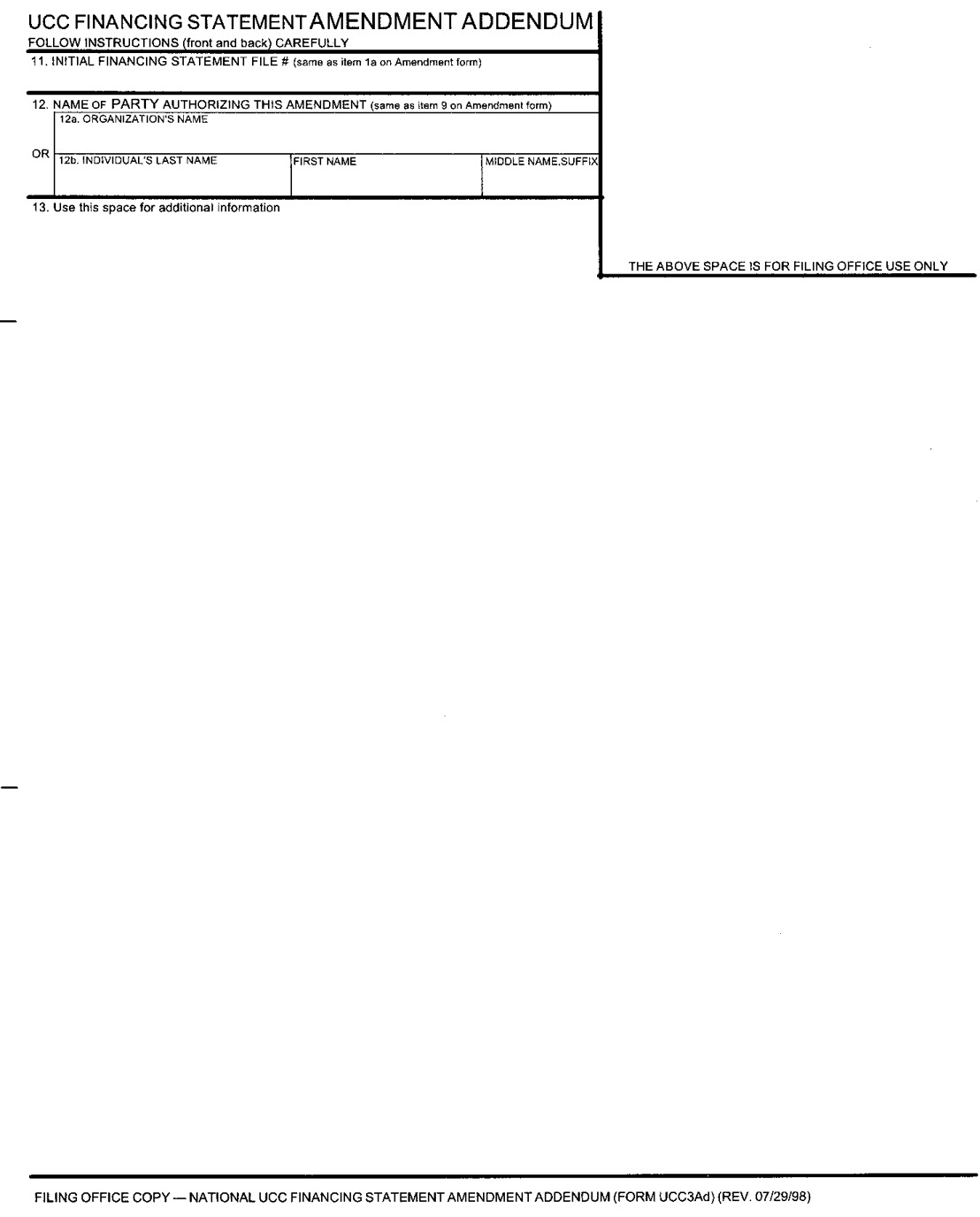 The filing office requires the use of the forms specified in Minnesota Statutes, section 336.9-521, which designate separate fields for individual and organization names and separate fields for first, middle, and last names and any suffix. All documents submitted through Web site entry are required to use designated name fields.